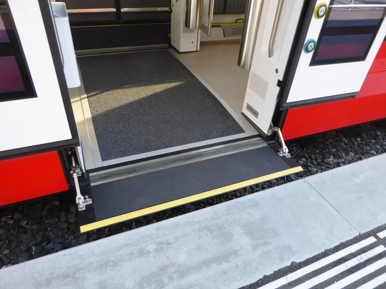 Passengers no longer face steps when boarding or alighting. For the first time, people with limited mobility can enter an ICE without assistance—no staff needed to operate lifts or deploy portable ramps. A platform lift is a small electric platform that bridges the gap between train and platform when height differences exist.